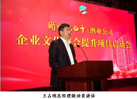 公司總經(jīng)理王占剛做動(dòng)員講話(huà)。王總提出,企業(yè)文化是一個(gè)企業(yè)的靈魂,中國知名的企業(yè),都有自己的核心文化,如洋河的“獅羊文化”、華為的“狼性文化”等等,而作為上市公司,我們的企業(yè)文化建設還有很遠的路要走。企業(yè)要做大做強,沒(méi)有科學(xué)規范的文化管理體系作支撐,就會(huì )寸步難行,形成何種價(jià)值觀(guān)念更為關(guān)鍵?!耙岳嘟?,利斷則散;以情相交,情斷則傷;唯以情相交,方能成其久遠?!逼髽I(yè)文化必須內化于心、外化于行、固化于制,要做屬于自己的酒文化。老白干興于漢,盛于唐,名于宋,傳承至今,擁有深沉厚重的歷史文化底蘊,尋找屬于自己的文化根基,形成老白干獨有的積極向上、朝氣蓬勃、充滿(mǎn)正能量的價(jià)值觀(guān),是我們企業(yè)文化建設的目標。王總的講話(huà)對公司企業(yè)文化既提出了殷切希望,又明確了工作要求,振奮了人心,鼓舞了士氣。