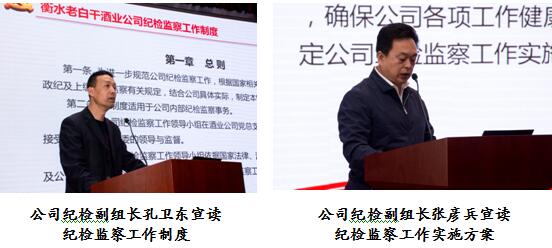 會(huì )議宣讀了《河北衡水老白干酒業(yè)股份有限公司紀檢監察工作制度》和《河北衡水老白干酒業(yè)股份有限公司紀檢監察工作實(shí)施方案》,提出了紀檢監察工作的指導思想,公布了紀檢監察工作領(lǐng)導小組成員名單、反映問(wèn)題郵箱和電話(huà),提出了紀檢監察工作的八項重點(diǎn)工作。