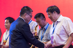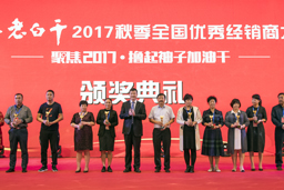會(huì )議過(guò)程中對2017年中秋銷(xiāo)售做出突出貢獻的優(yōu)秀經(jīng)銷(xiāo)商們進(jìn)行了表彰??偣绢I(lǐng)導上臺為各位獲獎經(jīng)銷(xiāo)商頒獎并合影留念。